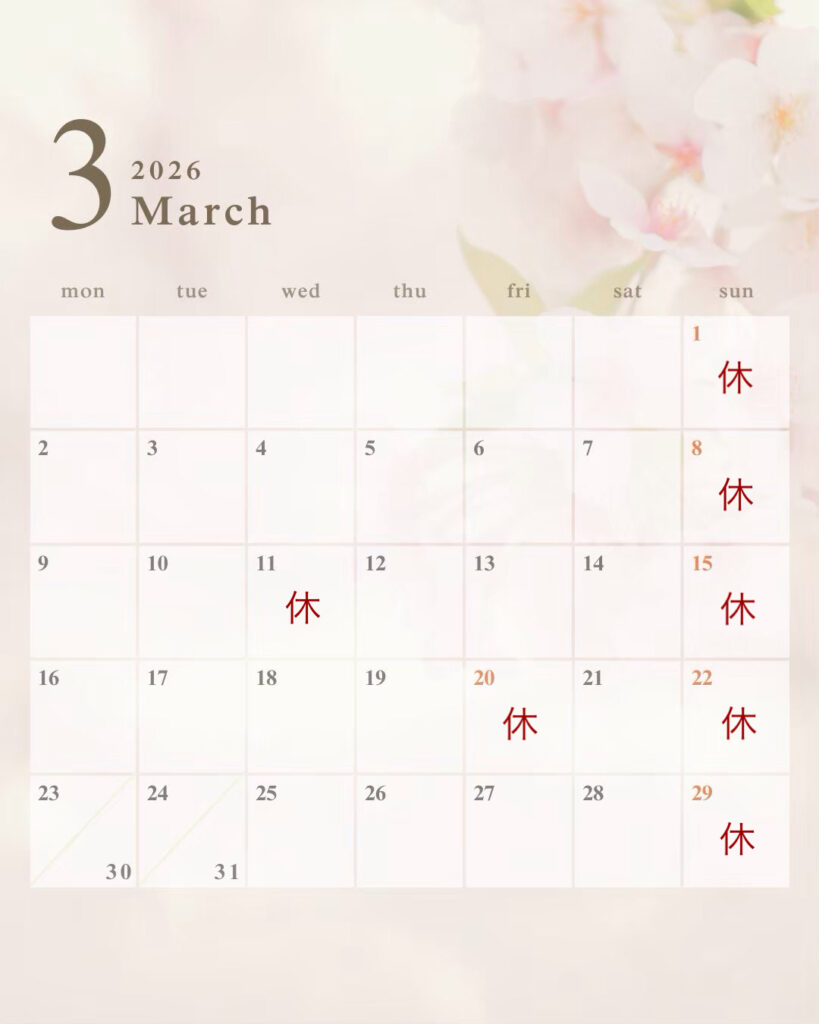 3月の営業日についてのお知らせ